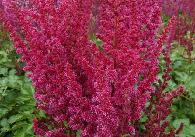 Астильба Астильба You and me Forever (Ю энд Ми Фореве). Яркий и заметный новый сорт астильбы китайской. Высота до 80 см. Соцветия плотные, высокие. Окраска темно-малиновая. Зацветает в июле и цветет очень продолжительно.