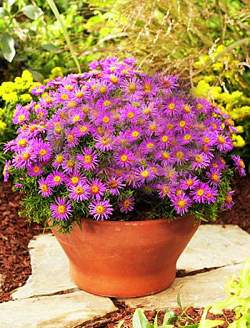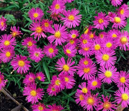Астра Alice Haslam (Элис Хаслам). Многолетнее травянистое растение с прямостоячими, сильно ветвистыми, опушенными стеблями, образующими полушаровидные кустики. Цветет очень обильно в августе-сентябре 35-40 дней.