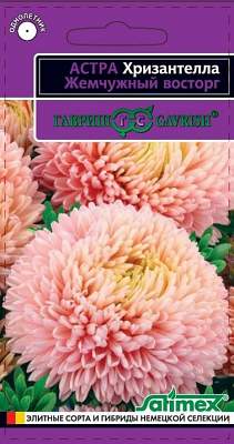 Астра Хризантелла Жемчужный восторг Н20. Инновационное направление современной селекции — Хризантеллы, гармонично объединившие жизненную силу и красоту астр и хризантем. Растение однолетнее, высотой 60-80 см с мощным толстым стеблем, формирует на одном кусте по 10-15 цветоносов второго порядка. Цветы плотные, крупные (12-15 см в диаметре), редкого жемчужно-розового окраса, с великолепной формой от полусферической до шаровидной. Лепестки ладьевидные, жесткие загнуты к верху. Не повреждаются дождем!