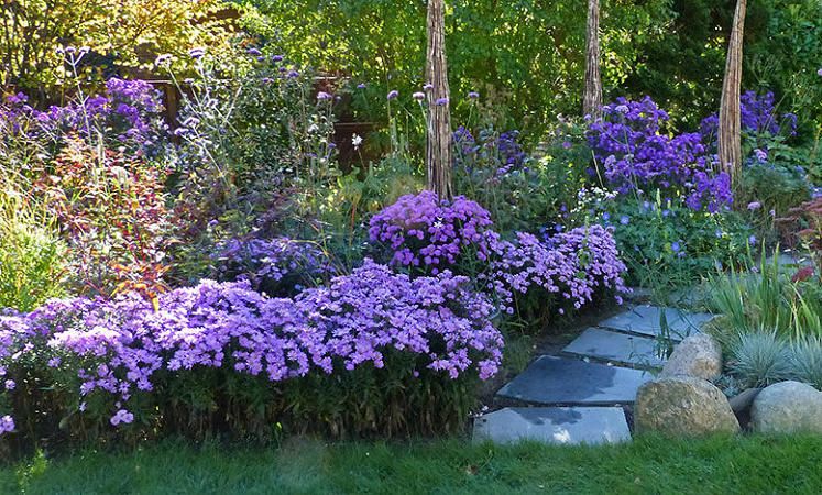 Астра Lady in Blue (Леди ин Блу). Многолетнее травянистое растение с прямостоячими сильно ветвистыми опушенными стеблями до 50 см высотой, образующими почти полушаровидные кустики. Листья сидячие, ланцетные, темно-зеленые, многочисленные. Соцветия до 3 см в диаметре, собраны в рыхлые щитки, язычковые цветки ярко-голубые. Цветет очень обильно в августе — сентябре 35-40 дней.