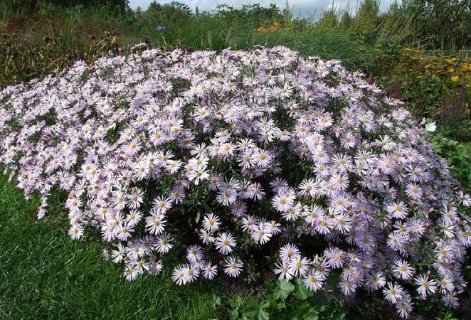 Астра пиренейская Lutetia (Лютеция). Этот неясный тон очаровывает. Яркого у нас в садах много, а вот эти пастельные сиреневатые тона, да еще в облаке нежнейших цветков с тонкими длинными лепестками, — как они нужны! Успокоят, подпоют и подтанцуют, прелестные цветки астры Лютеция.