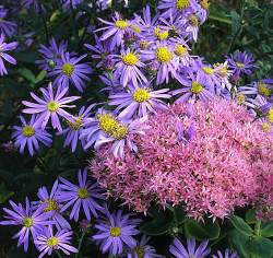Не астра, а мечта. Невысокая, пышная и воздушная, очень долго цветет. Образует облако лавандово-голубого цвета. Сочетается со всеми осенними многолетниками, начиная с эхинацей и заканчивая злаками.