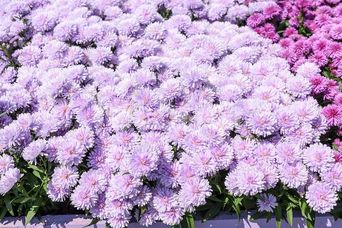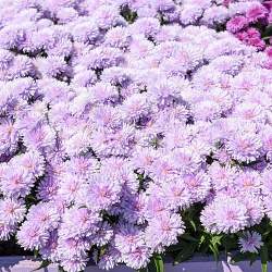 Астра Showmakers Lilac Sunset (Шоумейкерс Лилак Сансет). Прекрасная астра для позднеосеннего сада. Окраска цветков необычная, светло-сиреневая, диаметр цветков до 4 см. Цветки густомахровые. Высота куста 40-50 см. Даже после заморозков цветки не теряют декоративность, они оттаивают и продолжают радовать своим свежим видом.