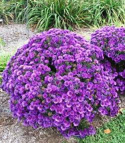 Астра Wood's Purple (Вудс Пёпл). Куст шарообразный, компактный. В период цветения не видно листьев. Цвет яркий, пурпурный. Прекрасное растение для передних планов цветников и бордюров.