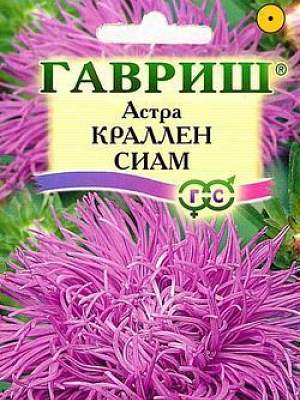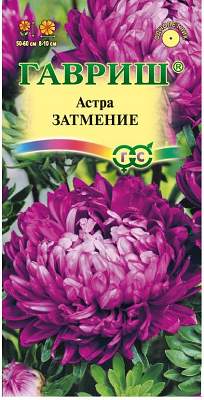 Астра Затмение однолетняя (пионовидная фиолет.). Растение высотой 50-60 см, диаметр куста 23 см. Соцветия пионовидные, диаметром 8-10 см, темно-фиолетовые с блеском. Одновременно цветут 5-6 соцветий. Для выращивания подходят хорошо освещенные участки с плодородной суглинистой или супесчаной почвой. Астры обладают высокой холодостойкостью — хорошо переносят заморозки до -3-4°C. Выращивают, чаще всего, рассадным способом. Семена высевают в марте-апреле, пикируют с развитием первой пары настоящих листочков по схеме 5х5 см, в открытый грунт рассаду высаживают с середины мая до начала июня. Возможен подзимний посев астр: в конце октября на глубину 5-8 см. Сверху посевы мульчируют торфом или опилками на высоту 3-5 см. Весной, в конце марта-начале апреля, посевы раскрывают. Появившиеся в конце апреля всходы будут закаленными, а выросшие растения сильными, устойчивыми к заморозкам и обильно цвести. Используются для получения срезки и оформления участка.