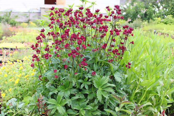 Астранция Rubra (Рубра). Хорошо растет как на солнце, так и в тени. Предпочитает обычные садовые плодородные почвы. Засухоустойчива. Рекомендуется для групповых посадок на газоне, миксбордеров, одиночных посадок, композиций с камнями.