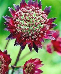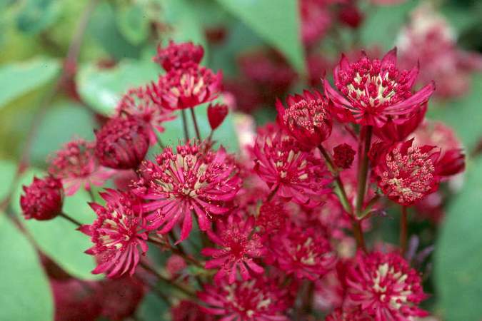 Астранция Ruby Cloud (Руби Клауд). Соцветие ярко-малиновое, эффектное. Цветет с начала лета до середины-конца сентября. Высота около 70 см. Растет как на солнце, так и в полутени.