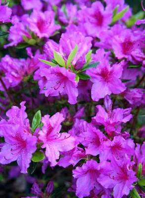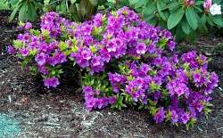 Азалия японская Blaue Donau (Блау Донау, Голубой Дунай). Быстрорастущий получвечнозеленый кустарник. Цветки не очень крупные, но их множество и они приятного розовато-фиолетового цвета. Морозостойкость высокая. Крона компактная, хорошо разветвленная.