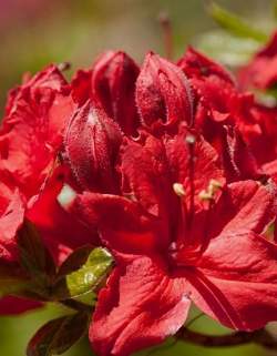 Азалия Crosswater Red (Кроссвотер Ред). Нэп-хилл. Яркий, нарядный! Цветки рубиново-красные, собраны в пышные соцветия. Морозостоек до -29 °С. Лучшее украшение весеннего сада.