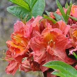 Азалия Juanita (Хуанита). Нэп-хилл. Куст с плотной овальной кроной. К 15 годам достигает 140 см в высоту и 160 см в диаметре. Цветет очень обильно в мае-июне. Цветки темно-розовые с золотисто-желтым пятном и волнистым краем на лепестках. Морозоустойчивость полная.
