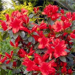 Азалия Signalgluhen (Сигналглухен). Крупноцветковый, необыкновенно привлекательный сорт из-за обильного цветения, небольших размеров и окраски цветков. Низкий, медленно растущий кустарник. В возрасте 10 лет достигает высоты 60 см и около 90 см ширины.
