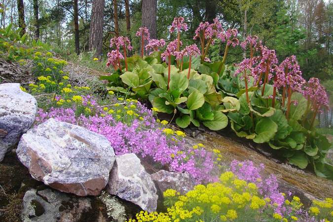 Цветки бадана колокольчатые, собранные в кисти, возвышаются над листьями ранней весной и создают в саду красивое зрелище. Баданы декоративны круглый год, быстро разрастаются и практически не требует к себе никакого ухода.