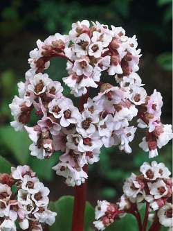 Бадан Silberlicht (Зильберлихт). Сорт с чудесными бело-розовыми цветками, собранными в крупные пышные соцветия. Украшение весеннего сада! Сорт хорошо разрастается, быстро образует куртины. Листья крупные.