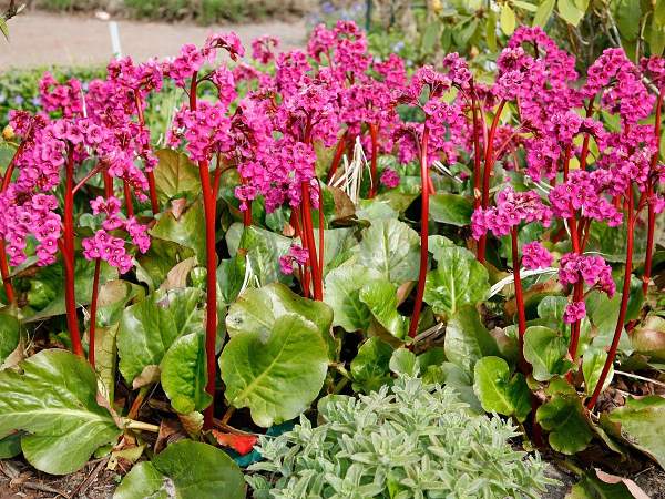 Бадан цветет с середины весны и до середины лета розово-красными цветками. Листья большие, кожистые, глянцевые, зеленого цвета с бордовым отливом овальной формы