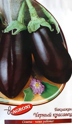 Баклажан Черный красавец. Один из лучших среднеспелых сортов, от всходов до плодоношения 110-125 дней. Растение полураскидистое, быстрорастущее, высотой 60-80 см. Плоды грушевидной формы, черно-фиолетовой окраски, длиной до 15 см, диаметром до 12 см, глянцевые, массой 200-250 г. Мякоть желтовато-белая, плотная, без горечи, с отличными вкусовыми качествами. Урожайность — 3,0-6,5 кг/м².