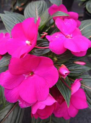 Бальзамин лиловый (1 л). Великолепное сезонное украшение сада. Может расти в тени и при этом обильно цвести. Цветки крупные, до 6 см, обильно покрывают компактный кустик с темно-зелеными вытянутыми листьями. Осенью растение можно забрать домой и содержать как комнатное растение.
