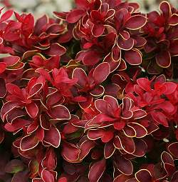 Барбарис Admiration (Эдмирейшн). Карликовый кустарник высотой до 0,5 м, шириной до 0,7 м. Крона округлой формы. Растет медленно. Цветы немногочисленные, одиночные или в пучках. Плоды продолговатые, красные, созревают в октябре. Листья мелкие, красно-оранжевые с желтой каймой. К почве нетребователен, устойчив в условиях города, хорошо стрижется. Наилучшего развития достигает на освещенных участках.