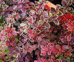 Изящные листья окрашены в пурпурный цвет с контрастирующей желто-зеленой каймой, очень нарядные и яркие!