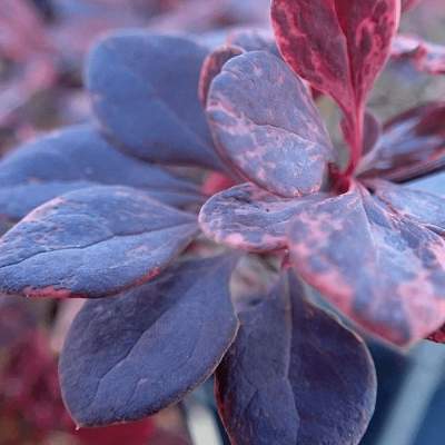 Поверхность небольших, красивых, темно-пурпурных листьев покрыта изящным узором из розовых и серебристых пятен. Цветет барбарис в мае. Цветки довольно невзрачные. Они небольшого размера, желтые, собраны в соцветия. Период обильного цветения продолжается 1-2 недели. Плоды красные, продолговатой формы, созревают в начале-середине осени.