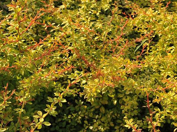 Барбарис Golden Dream (Голден Дрим). Небольшой вечнозеленый раскидистый кустарник с изящно изогнутыми побегами и мелкими декоративными листьями. Листья очень маленькие, ланцетовидные, жёлто-зелёные всё лето, сильно контрастируют с красными побегами. В конце лета — начале осени листья приобретают оранжево-коралловый оттенок. Цветет мелкими желтыми цветками в мае-июне. Плоды кораллово-красные, эллиптические, диаметром до 10 мм, созревают в августе-сентябре.