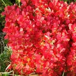 Барбарис Lutin Rouge (Лютин Руж). Новый густой компактный сорт с яркой листвой. Высота до 0,5 м, ширина до 0,8 м. Крона овальная, равномерная, густая. Листва округло-яйцевидная, на протяжении всего вегетационного периода оранжево-красная. Побеги темно-оранжево-красные.