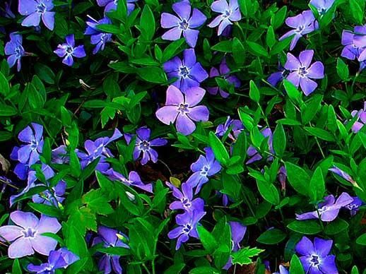 Барвинок малый. Вечнозеленое почвопокровное многолетнее полукустарниковое растение с длинными, ползучими, легко укореняющимися в междоузлиях, ветвящимися побегами.