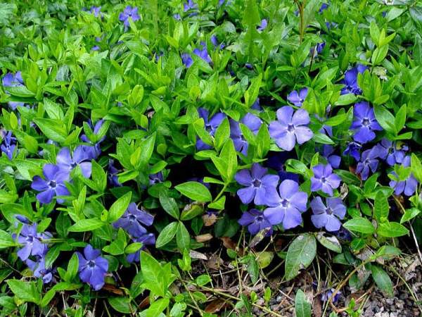 Весной ежегодно барвинку малому нужна сильная обрезка до 6 — 8 сантиметров от основания и подкормка органическим удобрением, например, перегноем.