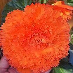 Бегония бахромчатая Оrange (Орандж, Оранжевая). Цветки супер крупные, до 20 см в диаметре, очень яркие, махровые, с бахромчатыми лепестками.