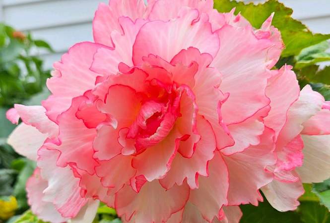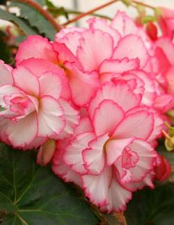 Бегония Bouton de Rose (Бутон де Роуз) — гибридная бегония с великолепными розовидными цветами, кустовая, клубневая. Компактный куст до 25 см высотой, со светло-зелеными листьями. Цветки крупные, махровые, белоснежные с ярко-малиновой каймой, 15-18 см диаметром.