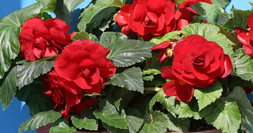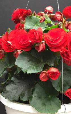 Бегония элатиор Red (Ред). Разнообразие сортов поражает воображение. Цветки простые и махровые, одноцветные и биколор, желтые, оранжевые, красные, различных оттенков. Цветущая бегония — это зрелище выдающееся, листьев практически не видно.
