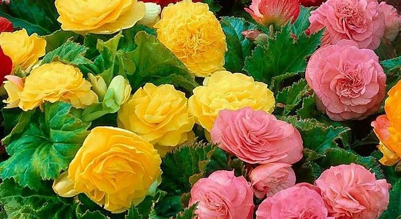 Бегония Нон-стоп (микс). Цветки крупные, махровые, распускаются до глубокой осени в больших количествах. Можно высаживать в кадки и ящики для украшения балконов, патио, террас, веранд. Также можно высаживать в бордюрах и рабатках. Великолепно смотрится в подвесных длинных ящиках.