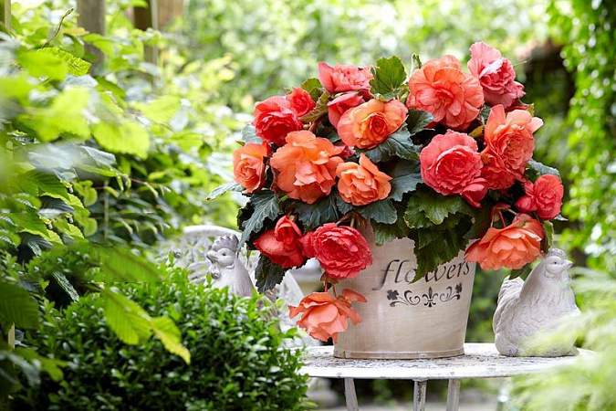 Для сохранения цветения в жаркую сухую погоду рекомендуется поливать рано утром. Во время полива желательно избегать попадания воды на листья и цветки. Высокие бегонии с крупными цветками следует подвязывать. Ампельные сорта нужно прищипывать, чтобы образовывались боковые побеги. Бегонии очень отзывчивы на подкормки, их надо проводить регулярно в течение всего вегетационного периода. Тогда цветки будут лучшего качества и их будет больше.