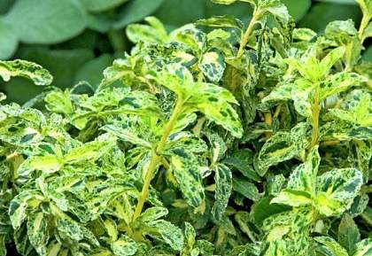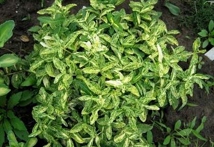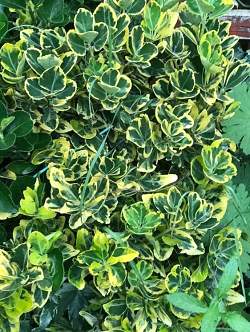 Бересклет форчуна Golden Harlequin (Голден Харлеквин). Вечнозелёный кустарник стелющейся формы с красивыми и очень контрастными листьями. В отличие от других сортов, Бересклет форчуна Golden Harlequin плохо плодоносит и практически незаметно цветёт в условиях средней полосы. Несмотря на это, благодаря листьям овальной формы кремового цвета с зелёными или розоватыми вкраплениями, кустарник станет находкой и уникальностью для любого дизайна и участка. Ещё одна несомненная особенность бересклета в его способности расти на различных подпорках, разрастаться по камням и оградам. Очень часто растение используют вдоль бордюров, газонных дорожек.