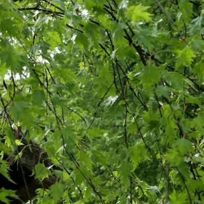 Береза Crispa (Криспа). Листопадное дерево высотой 20-25 м с узкой ажурной кроной и прямым стволом, основные ветви растут под острым углом, боковые ветви плакучие. Листья с неравнозубчатыми краями, глубоко рассеченные. Кора чисто-белая, тонкая. В Известна с 1767 г (найдена в лесу на юге Швеции, в Далекарлии). Листья зеленые, осенью — с ровной желтой окраской. Отличаются характерными неравнозубчатыми краями, глубоко рассеченные.