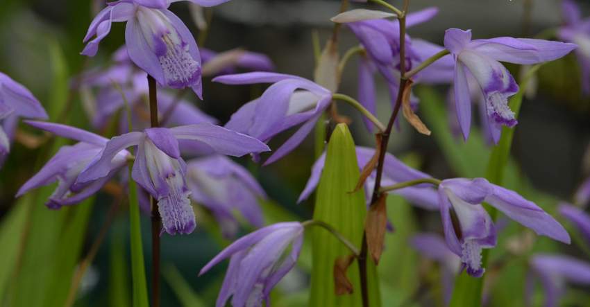 Блетилла полосатая Blue Dragon (Блу Дрэгон). Цветки небольшие, лавандово-синие. Губа трёхлопастная, с белыми зубчатыми гребешками. Соцветие колосовидное. Цветение в июне. Листья высотой 30 см, шириной 5-7 см, обратно-ланцетные, заострённые, с резко выраженными продольными складками. Высота 60-70 см. Место солнечное или полутенистое.