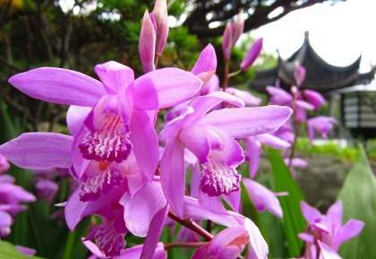 Блетилла полосатая Variegated (Вариегатед). Многолетнее растение семейства орхидных высотой 30-70 см. Соцветие состоит из 8-10 ароматных цветков, собранных в кисть.