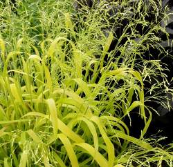 Бор Aureum (Ауреум). Холоднорастущее растение с удлиненным корневищем, расползается, но не очень агрессивно. Высотой 45-50 см. Листья яркие, светло-желтые, имеют редкие узкие длинные зеленые штрихи. Ширина листьев 15-20 мм. Метелка рыхлая, раскидистая, 15-25 см длиной. Цветет в июне.
