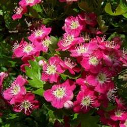 Боярышник Punicea (Пуницея). Небольшое дерево или кустарник, вырастает до 4 м. Крона широкоокруглая, симметричная. На побегах имеются колючки. Листья — ромбические или яйцевидные, 3-5-раздельные, темно-зеленые. Цветет в мае-начале июня. Цветки — от темно-розовых до темно-красных, одиночные. Плоды — округлые, 0,7 см, красные или красно-бурые, с одной косточкой — созревают в сентябре. Теневынослив, но лучше развивается на солнечных местах или в полутени.