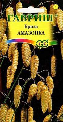 Бриза трясунка Амазонка 0,2 г. Растение для зимних букетов из семейства Злаковые высотой 40 см. Цветет в июле-августе. Цветки собраны золотисто-зеленоватые колоски 1 - 2,5 см длиной, которые образуют раскидистую метелку. Неприхотлива, холодостойка, выносит полутень. Предпочитает хорошо освещенные участки с рыхлой почвой без избытка влаги.