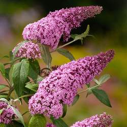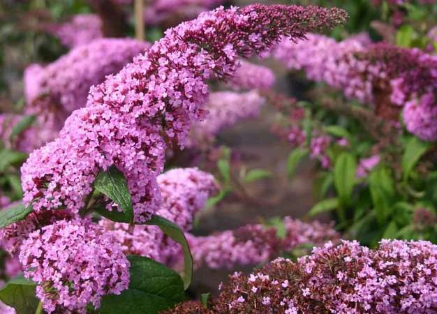 Буддлея Pink Delight (Пинк Дилайт). Быстрорастущий кустарник с поникающими побегами, высотой до 3 м. Цветки серебристо-розовые, собранные в соцветия длиной 40 см, ароматные и привлекающие бабочек, цветёт в июне-октябре. На зиму требует тщательного укрытия, может подмерзать, но после обрезки быстро отрастает и обильно цветёт в том же году.