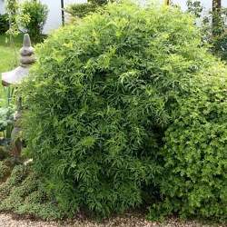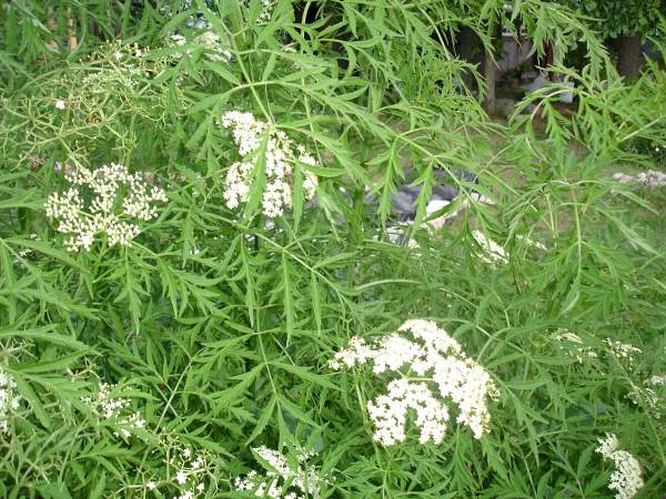 Бузина Laciniata (Лациниата). Замечательное растение для средней полосы России. Редкое по красоте и совсем неприхотливое. Образует округлую крону высотой до 250 см. Листья ажурные, сильно рассеченные. Соцветия — белые щитки. Осенью появляются черные глянцевые ягоды, которые не только вкусны, но и очень полезны.
