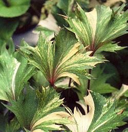 Бузульник Osiris Fantaisie (Осирис Фэнтези). Сорт с необычным окрасом листьев: тёмно-зелёный с коричнево-бордово-фиолетовым оттенком. Край листа волнистый зубчатый. Цветки золотисто-желтые в виде крупной ромашки, на красных цветоносах. Цветение обильное.