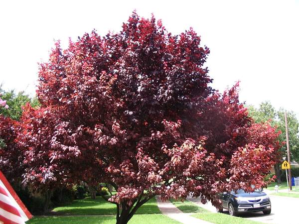 Черёмуха Сибирская Красавица. Сорт краснолистной черемухи был получен российскими селекционерами из НИУ "Центральный сибирский ботанический сад" путем скрещивания обыкновенной черемухи и виргинской сорта Шуберт (Schubert). Растение имеет густую пирамидальную крону, вырастает до 4-5 м в высоту.