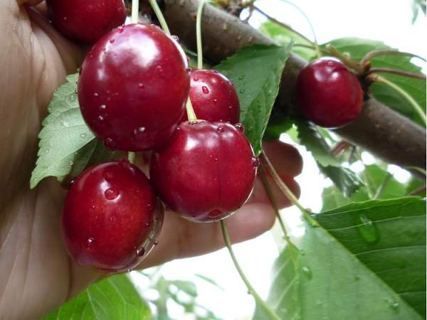 Ягоды имеют средний вес 4,5 грамма, а максимальный чуть выше 7. Форма плода широкая, сердцевидное: кончик заострен, а основание сплюснуто. Мякоть плотная, но очень сочная, сладкая. Внутри имеется овальная косточка, она некрупная, и вес ее составляет чуть более шести процентов от массы всего плода. Ягоды очень вкусные, и получили дегустационную оценку 4,7.