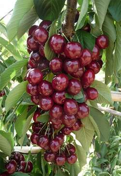 Черешня пирамидальная (колонновидная) Сильвия. Среднего срока созревания. Дерево высотой до 3-х м с вертикально растущими побегами. Плоды крупные, средним весом 10-12 г, темно-красного цвета, сочные, плотные, сладкие, с медовым вкусом. Созревание в третье декаде июля.