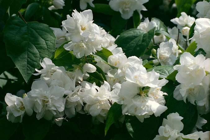 Чубушник (Жасмин садовый) — листопадный кустарник различной высоты и формы в зависимости от вида и сорта. Желательно высаживать на солнце, в этом случае он цветёт обильнее. Может расти в полутени и даже тени.