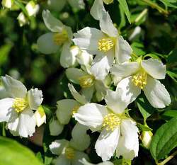 Чубушник Лавина. Высота 1,5 м. Куст с изящно ниспадающими ветвями. Листья мелкие, зеленые. Цветки полумахровые, белые до 3 см в диаметре, обладают сильным ароматом земляники. Цветет очень обильно в самые ранние сроки. Сорт является гибридом сорта Лемуана Avalanche (Лавина), улучшенным Н.К. Веховым.