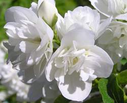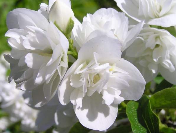 Чубушник Snow Avalanche (Снежная Лавина). Один из самых ранних. Кустарник не выше 150 см. Побеги изогнутые, ниспадающие. Листья мелкие, до 4 см, овальные. Куст весь покрыт белыми полумахровыми цветками диаметром 3 см. Цветки имеют сильный земляничный аромат. Цветение обильное в июне-июле.