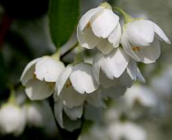 Чубушник Воздушный Десант. Цветки колокольчатой формы белые, душистые, немахровые с ароматом земляники. Ярко-жёлтые тычинки видны с нижней стороны опущенных вниз околоцветников. Побеги куста под тяжестью цветков немного наклоняются. Куст имеет пирамидальную не разваливающуюся форму, высота до 2 м (данные для взрослого 10-ти летнего растения).