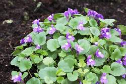 Почвопокровное растение с хрупкими длинными стеблями, покрытыми мелкими листочками, с маленькими цветочками, цветущими всё лето. Разрастается за счёт подземных побегов — столонов, листья округлые сизовато-зелёные. Цветки фиолетовые, довольно крупные, в середине лета.